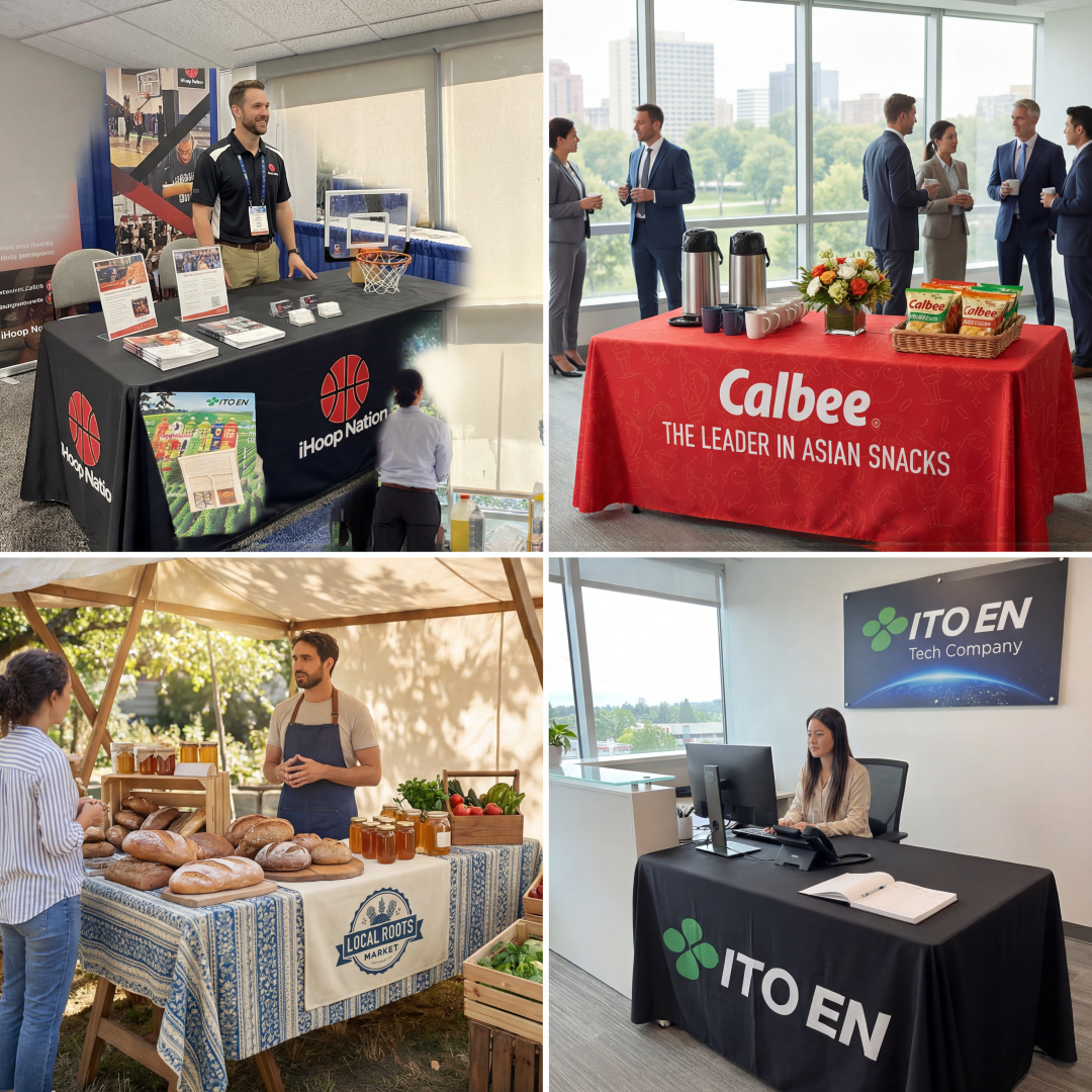 Stop using generic plastic covers. Elevate your booth's professionalism with our Custom Woven Fabric Tablecloth. Whether you are hosting a tasting demo or setting up a corporate display, this tablecloth ensures your brand looks polished, consistent, and impossible to ignore.